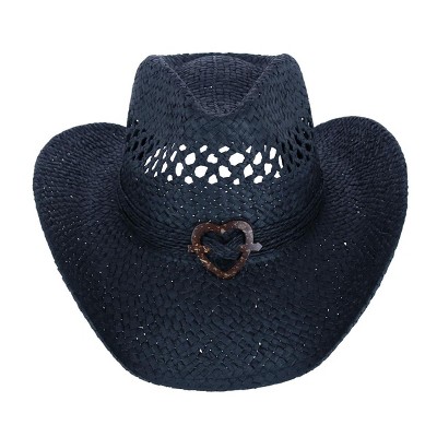 Western Express Black Palm Straw Western Cattleman Hat with Curled Brim