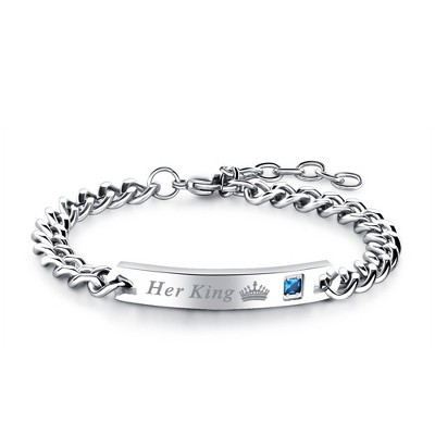His Queen or Her King Bracelet for Women by Ginger Lyne Stainless Steel ID Style Pink CZ Adjustable to 7.5"