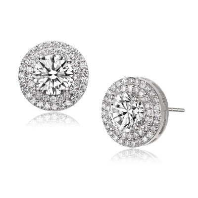 Guili Round Stud Earrings in Sterling Silver with CZ and Morganite Stones, in Silver or Rose Gold – Subtle Glam for Everyday Elegance