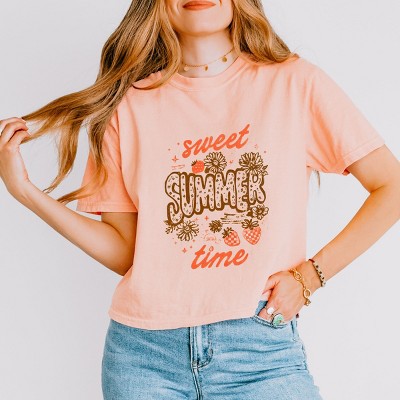 Sweet Summer Time Strawberry - Women's Boxy Crop Top Graphic T-Shirt