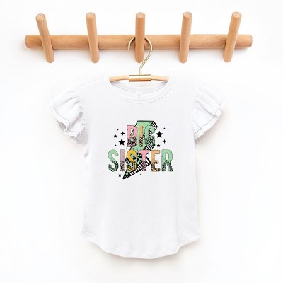The Juniper Shop Big Sister Lightning Bolt Toddler Flutter Sleeve Tee