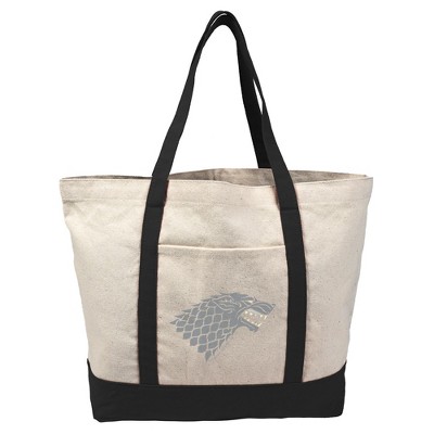 Game of Thrones Stark Sigil Canvas Tote Bag With External Pocket, Reusable Shoulder Bag for Shopping, School, Beach, Black