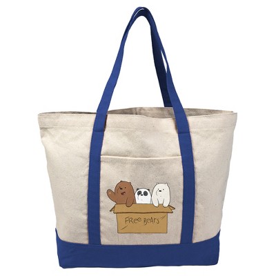 We Bare Bears Baby Bears Canvas Tote Bag With External Pocket, Reusable Shoulder Bag for Shopping, School, Beach, Royal