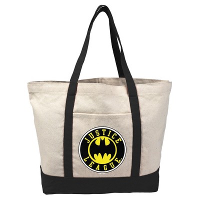 Justice League Batman Athletic Logo Canvas Tote Bag With External Pocket, Reusable Shoulder Bag for Shopping, School, Beach, Black