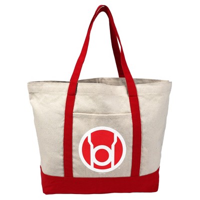 Green Lantern Blackest Night Red Lantern Logo Canvas Tote Bag With External Pocket, Reusable Shoulder Bag for Shopping, School, Beach, Red