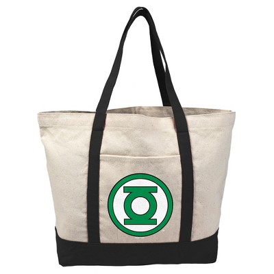 Green Lantern White Logo Canvas Tote Bag With External Pocket, Reusable Shoulder Bag for Shopping, School, Beach, Black