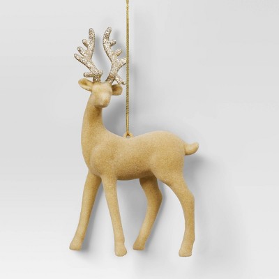 5.9" Christmas Plastic Light Brown Flocked Deer with Glitter Antler Ornaments - Wondershop™