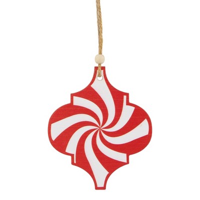 Northlight 4.5" Red and White Candy Cane Swirl Bauble Wooden Christmas Ornament
