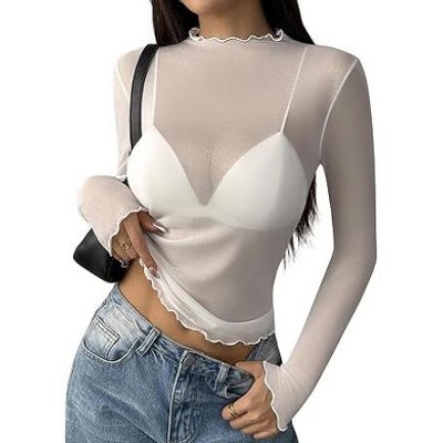 Women's Mesh Top - Wild Fable™ Off-White Polka Dots