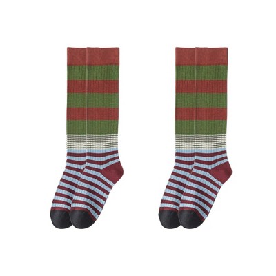Memoi Women's Multicolor Stripe Over The Knee Sock Burgundy One Size