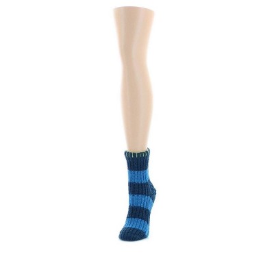 Memoi Women's Wide Stripe Chenille Non-Skid Slipper Crew Sock