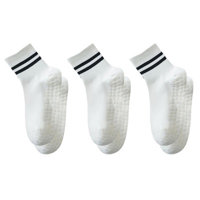 Anna-Kaci Women's 3-Pack Ankle Socks with Rubber Grips and Striped Ribbed Cuffs Soft Non-Slip Sporty Style