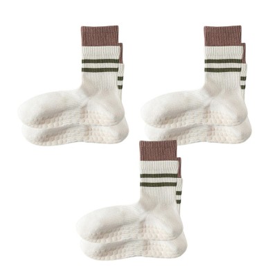 Anna-Kaci 3-Pair Mid-Calf Grip Bottom Socks with Striped Cuff and Soft Ribbed Knit for Everyday Comfort and Stability - 3 pk-Beige