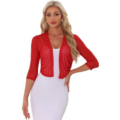 INSPIRE CHIC Women's 3/4 Sleeve Open Front Mesh Sheer Chiffon Bolero Shrug