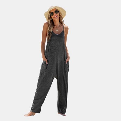 Womens Sleeveless Jumpsuit Casual Summer Overalls Jumpers Spaghetti Strap Baggy Long Rompers with Pockets