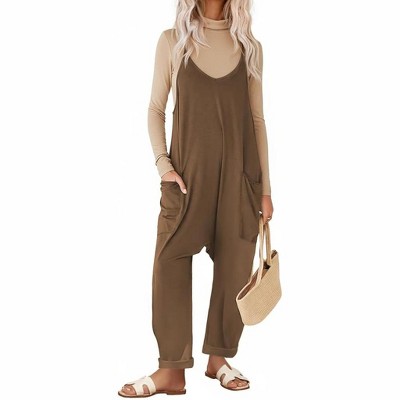 Women Solid Color Overall - Breathable Sleeveless Romper with Comfortable Loose Silhouette