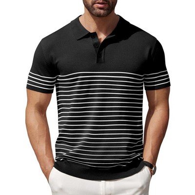 COOFANDY Men's Knit Polo Shirts Short Sleeve Striped Golf Polo Shirts Lightweight Casual Collared T Shirt
