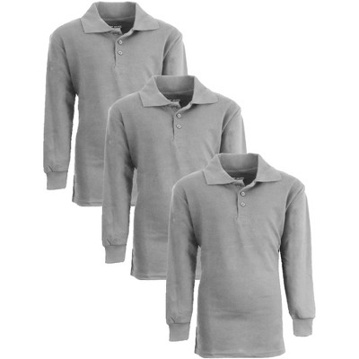 Galaxy Authentic Boy's Slim Fit Long Sleeve Polo Shirts-3 Pack