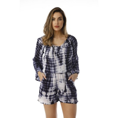 Riviera Sun Womens Tie Dye 3/4 Sleeve Rayon Crepe Printed Romper for Women