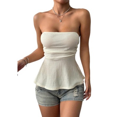 Coolmee Womens Peplum Tube Tops Smocked Sleeveless Strapless Bandeau Summer Cute Ruffle Tank Top