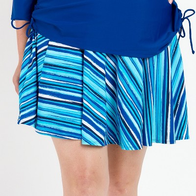 Calypsa Women's Plus Size High Waisted Chlorine Resistant Flowy Swim Skirt With Attached Shorts