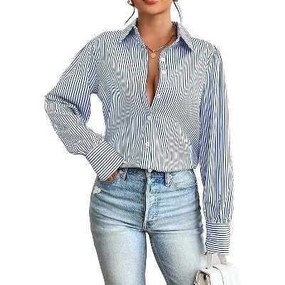 Clearlove Women's Striped Shirts Button Front Long Sleeve T Shirt Casual Crew Neck Tops