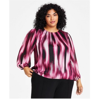 Alfani Womens Striped Sleeve Floral Tunic Blouse