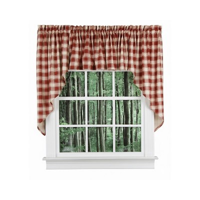 Ellis Curtain 50% Polyester 50% Cotton Country Check With 1.5" Rod Pocket Tailored Window Swag 56" x 36" Brick