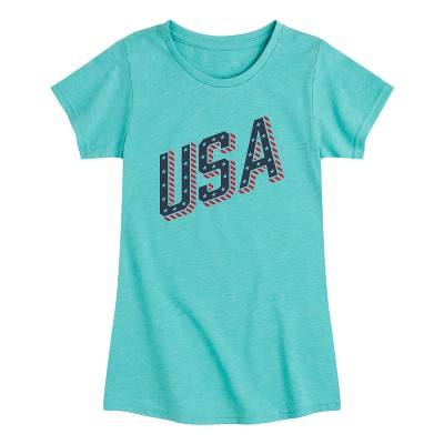 Girls' - Instant Message - USA Stars and Stripes Fitted Short Sleeve Graphic T-Shirt
