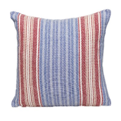 HomeRoots 16" Blue and Red Striped Cotton Throw Pillow