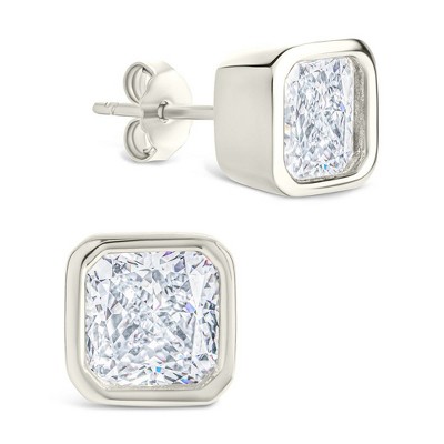 Shine By Sterling Forever Sterling Silver Princess Cut Bezel Set Stud Earrings