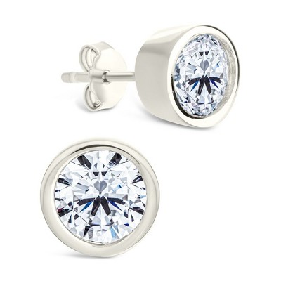 SHINE by Sterling Forever Sterling Silver Round Cut Bezel Set Stud Earrings