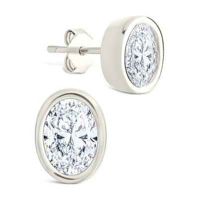 SHINE by Sterling Forever Sterling Silver Oval Cut Bezel Set Stud Earrings