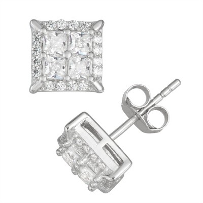 Bella Silver Sterling Silver Double Square CZ Stud Earrings - Silver