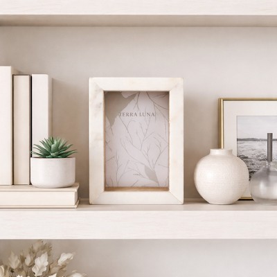 Decorative Mango Wood Picture Frame with Marble Border for Home Decor - Modern Photo Frame for Entryway, Bedroom, and Room Decor