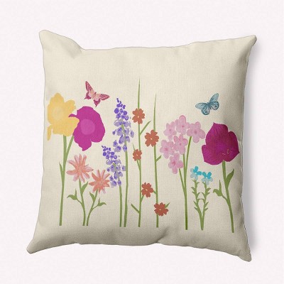 e by design Little Garden Decorative Throw Pillow Yellow: Indoor Square Floral Accent, Polyester Twill, 16x16