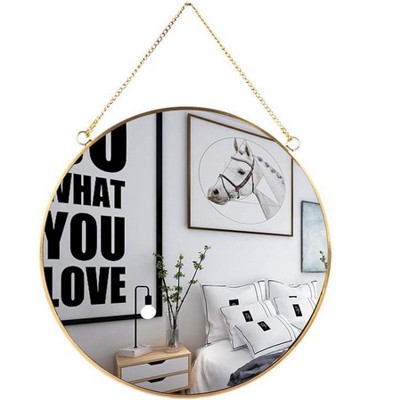 Aoibox Hanging Wall Circle Mirror Decor Gold Geometric Mirror with Chain for Bathroom Bedroom Living Room