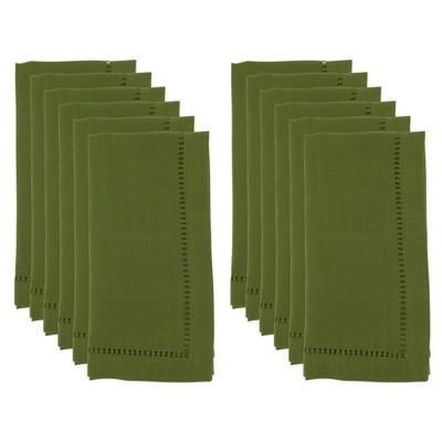 20" 12pk Polyester Hemstitch Border Dinner Napkins Green - Saro Lifestyle