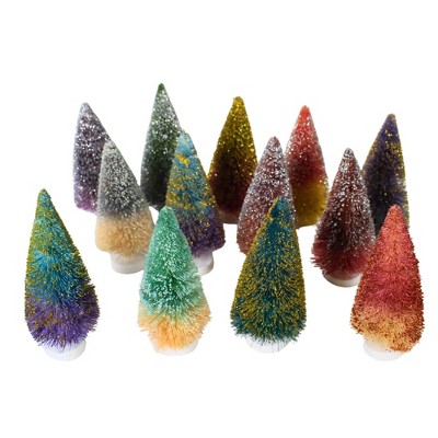 Cody Foster 3.75 In Rainbow Ombre Bottle Brush Trees Christmas Decorative Tree Set , Putz Village Pine Christmas (13PC)