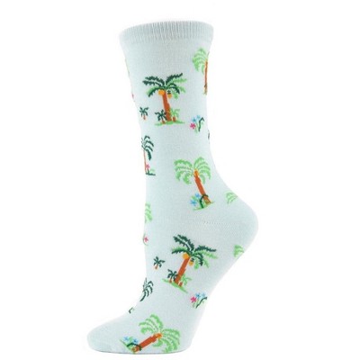 Memoi Palm Tree Paradise Bamboo Blend Crew Socks Mint 9-11