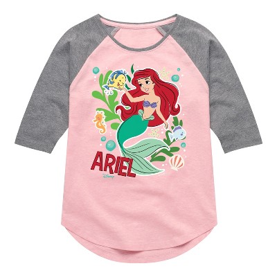 Girls' - Disney - Ariel Sticker Shirt Tail Raglan Graphic T-shirt