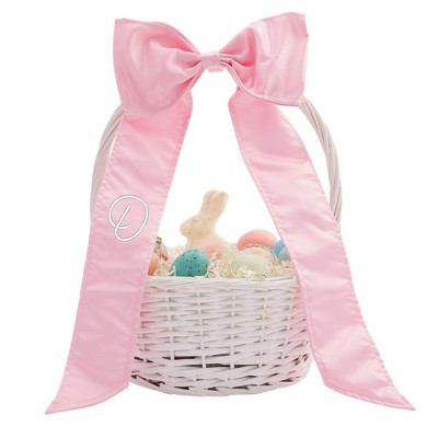 Personalization Mall White Easter Basket With Initial Embroidered Bow