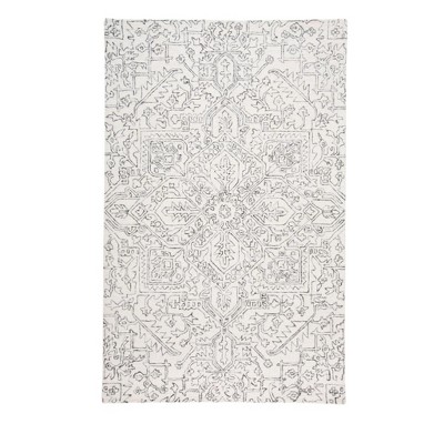 HomeRoots 2' X 3' Ivory And Gray Wool Floral Tufted Handmade Stain Resistant Area Rug