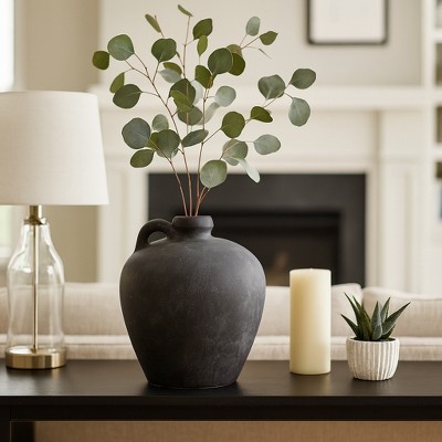 Weathered Terracotta Table Vase Jug with Handle for Home Decor - Decorative Tall Flower Vase Accent for Shelf and Living Room