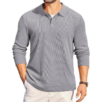 COOFANDY Mens Long Sleeve Polo Knit Polo Sweater Collared Pullover Casual Golf Polo Sweater
