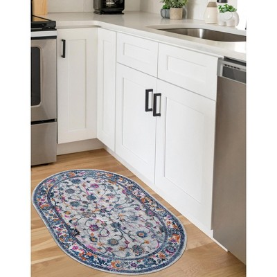 Scalloped Washable Kitchen Rugs, 2x6 Indoor Modern Non Slip Hallway Runners, Ultra Soft Thin Ombre Throw Carpet for Bedroom Laundry Bathroom