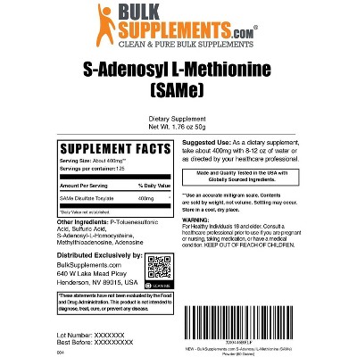 BulkSupplements SAMe (S-Adenosyl-L-Methionine Disulfate Tosylate) Powder