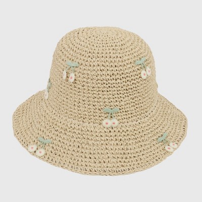 Anna-Kaci Women's Straw Bucket Hat with Cherry Embellishments