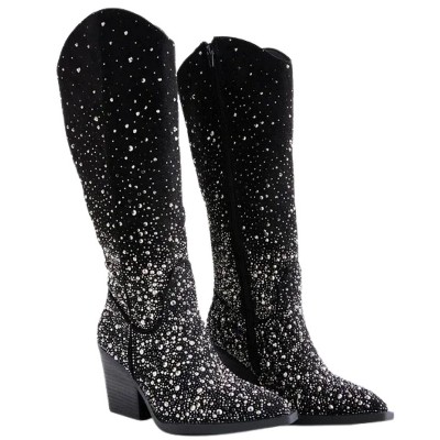Womens Very G Blaze Rhinestone Knee High Tall Suede Block Heel Western Boots