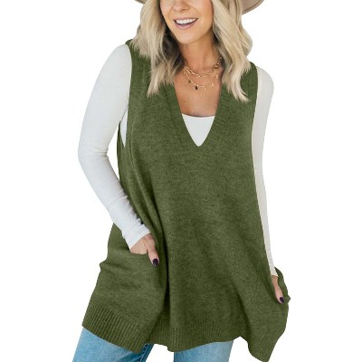 Coolmee Women's Sweater Vest Oversized Sleeveless V Neck Pullovers with Pocket Knitted Outfits